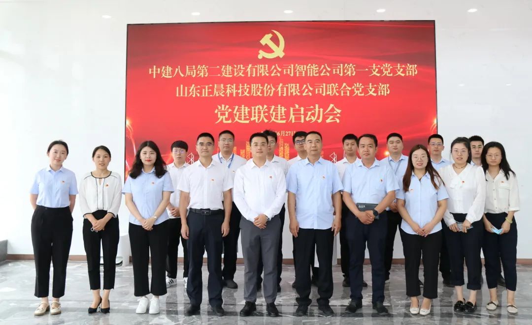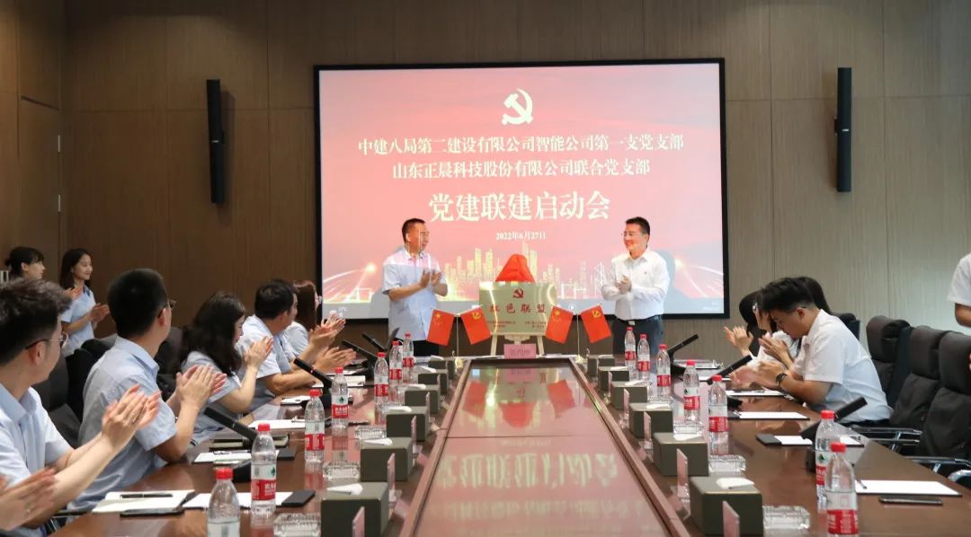 仪式上,正晨科技联合党支部与中建八局二公司智能公司第一党支部双方代表进行“红色联盟”签约揭牌,双方明确携手探索人员联动、活动联办、品牌联创的有效途径,通过开展“六个一”主题活动,共同加强党员教育、提高党建水平。